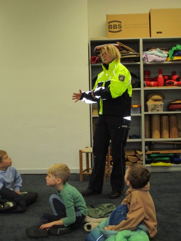Am 15.12.2023 besuchte uns auch in diesem Jahr Frau Maiß von der Polizei. Zum Thema „Sicherheit durch Sichtbarkeit“ erklärte sie den Kindern des ersten Jahrgangs, wie wichtig es ist, gerade in der dunklen Jahreszeit im Straßenverkehr gut gesehen zu werden. Anhand von kleinen Experimenten zeigte sie uns, dass man mit dunkler Kleidung in der Dunkelheit kaum gesehen wird; trägt man helle Kleidung, ist man schon besser sichtbar. Am besten ist es jedoch, Jacken und Taschen mit Reflektoren zu tragen; dann wird man auch im Dunkeln von jedem Verkehrsteilnehmer gut gesehen.
