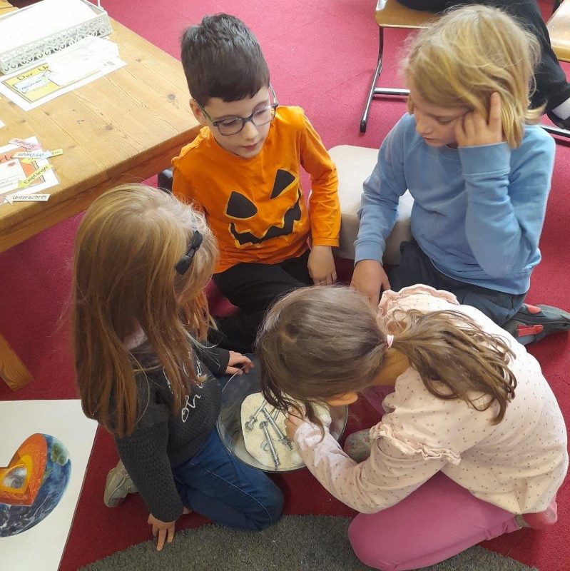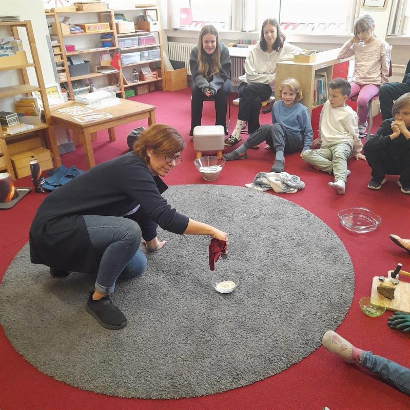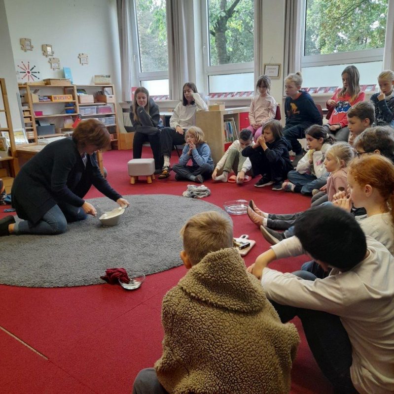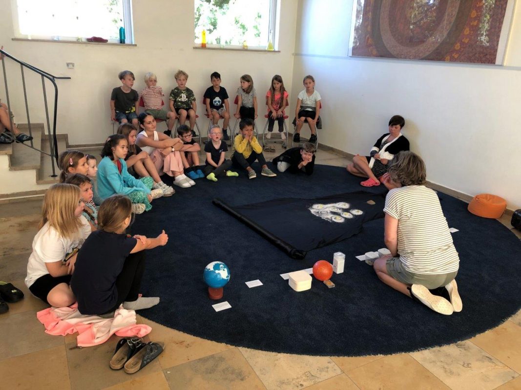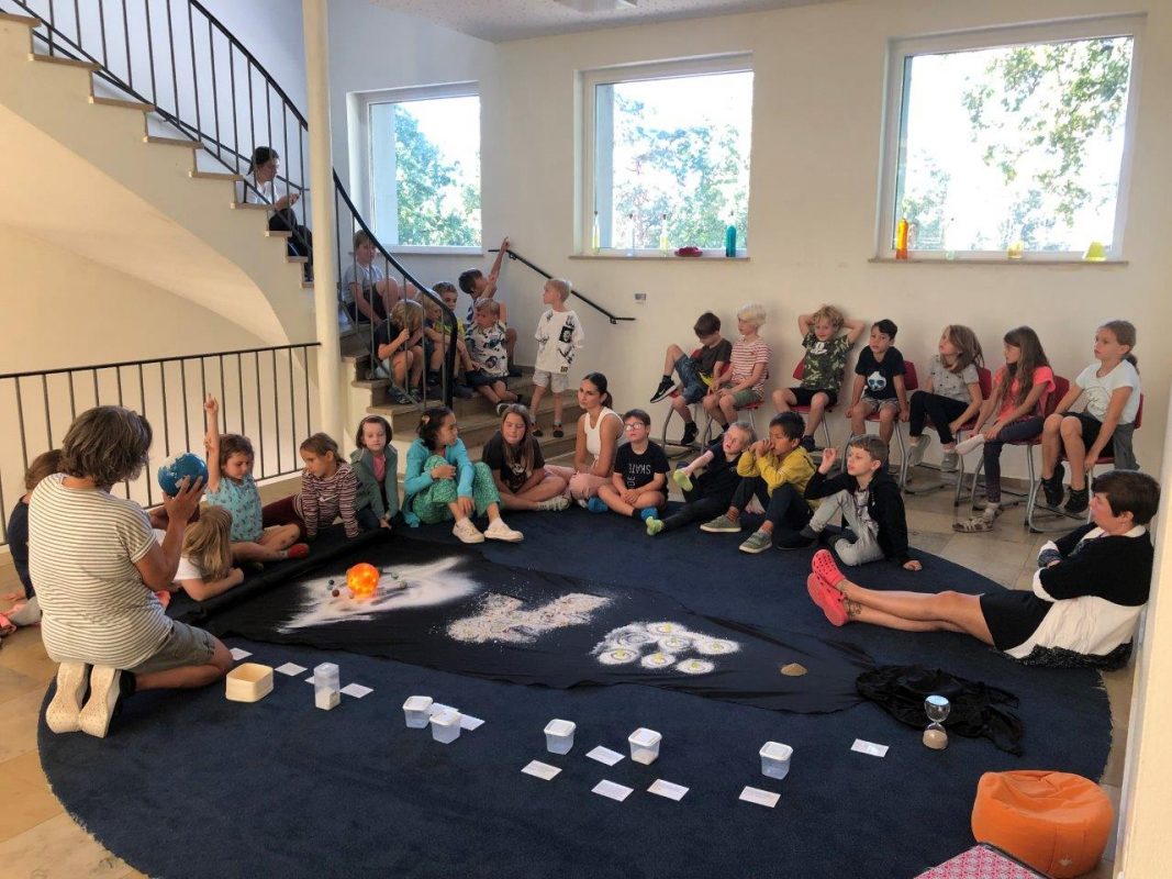 Grundschule, GS 2023/2024Die Entstehung des Universums und der Erde Auch in diesem Schuljahr präsentieren wir Lernbegleiterinnen unseren Kindern die Kosmischen Erzählungen. Vor den Ferien hörten die Klassen von der Entstehung des Universums, nun lauschen sie gespannt der Erzählung über die Entstehung der Erde. Besuch von Prinz Nomen Ausgezeichnet!