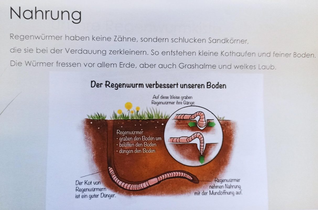 Nachdem zwei Kinder aus der Klasse A viele interessante Informationen über das Wundertier Regenwurm herausgefunden hatten, waren schnell auch die Eltern von der Begeisterung angesteckt.