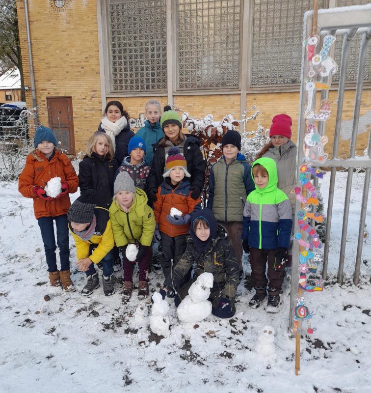 Grundschule, GS 2024/2025Es schneit, es schneit! Kommt alle aus der Schule! Ein paar kleine Schneemänner lang, haben wir heute den Unterricht in die Schneepracht verlegt. Alle Sinne… Tombolapreise