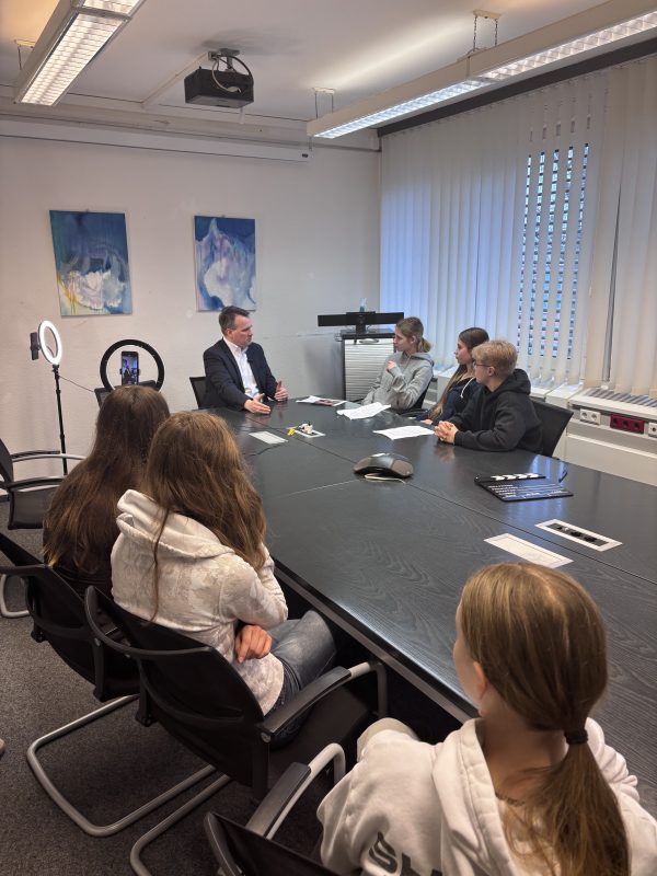 🗣️ Einige unserer Schüler*innen haben Dorstens Bürgermeister Tobias Stockhoff getroffen und mit ihm über die Folgen von Fake News gesprochen – für unsere Gesellschaft, für Dorsten und weltweit sowie über seine persönlichen Erfahrungen.