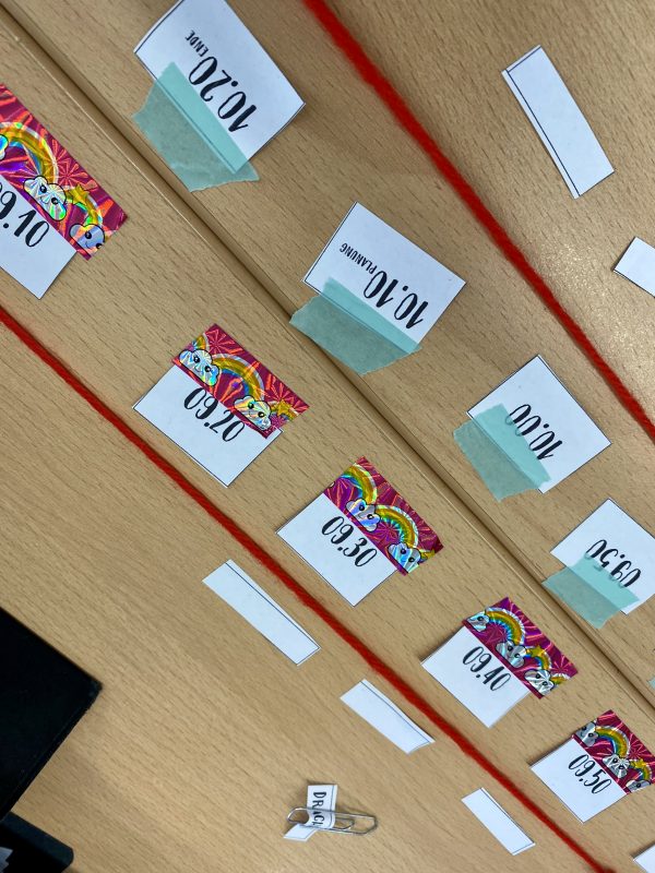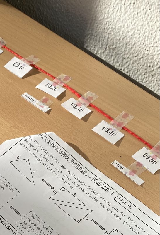 Heute in Mathe: 90 Minuten selbst planen, Themen und Zeiten am roten Faden.