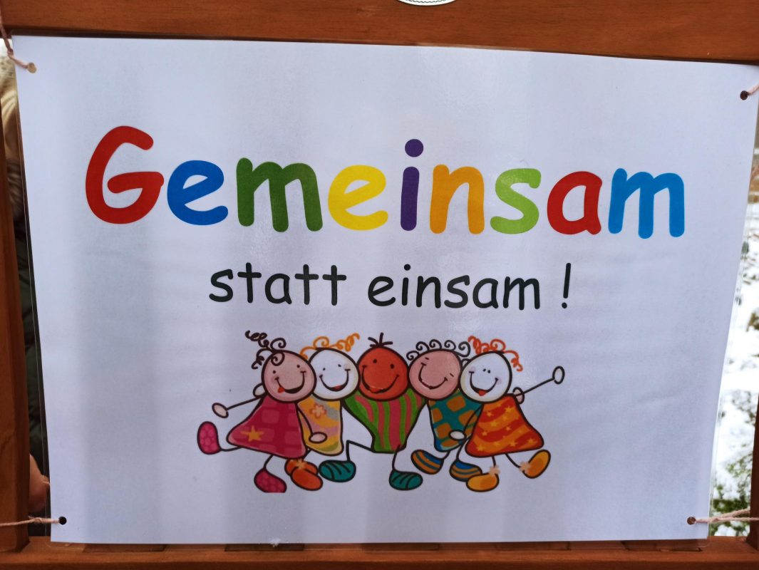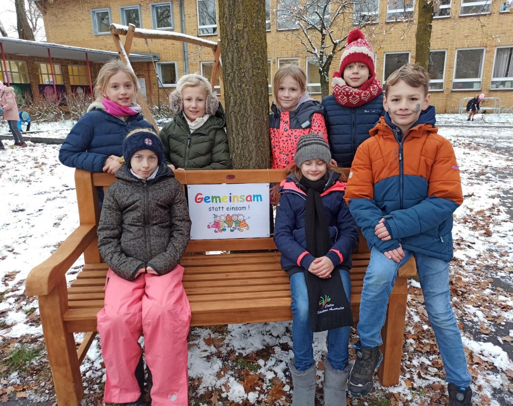 Kurzerhand schrieben die Kinder einen Brief an alle Eltern, erklärten ihre Idee und baten um Spenden. Drei Familien sorgten dank einer großzügigen Geldspenden dafür, dass wir eine schöne Holzbank kaufen konnten. Diese fand schnell einen optimalen Platz mitten auf dem Schulhof. Ein einladendes Schild wurde angebracht und die Kindervertreter erklärten in ihren Klassen den Sinn dieser Bank.