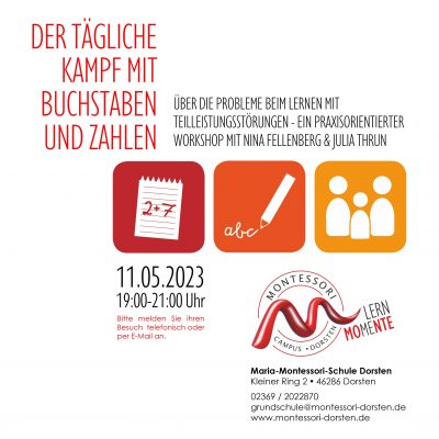 Wie nehmen Kinder mit einer Teilleistungsstörung Lerninhalte wahr?Welche Hürden müssen sie täglich überwinden? Wir möchten mit Ihnen gemeinsam erlebbar machen, [...]