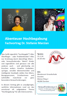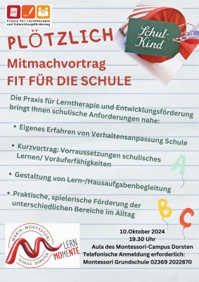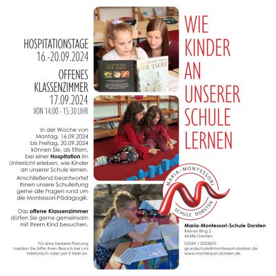 Seit zwei Jahren bietet die Montessori-Grundschule Vorträge und Workshops mit schulbezogenen Inhalten an, die von den Lernbegleiter*innen oder externen Referent*innen [...]