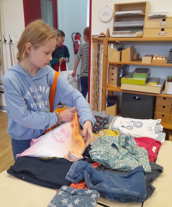 Grundschule, GS 2024/2025Kleidertauschbörse im Herbst 2024 Im Sinne der Nachhaltigkeit gingen unsere Kinder wieder einmal in der großen Pause durch die Klassen bummeln und konnten aus einem großen Modeangebot schöpfen. Manchmal kommen sie wieder… Nach der Ernte geht es weiter