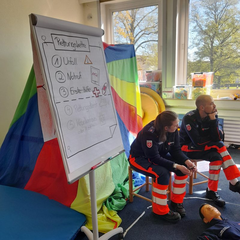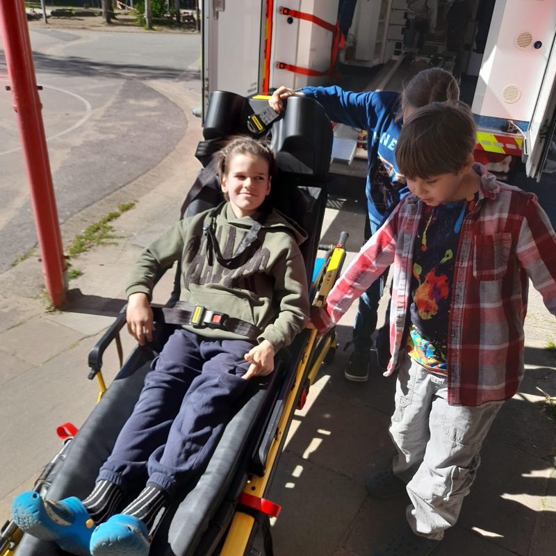⛑️ Sie haben die Rettungskette kennengelernt, einen Notruf abgesetzt 📞 und durften außerdem das Rettungsfahrzeug besichtigen. 🚐