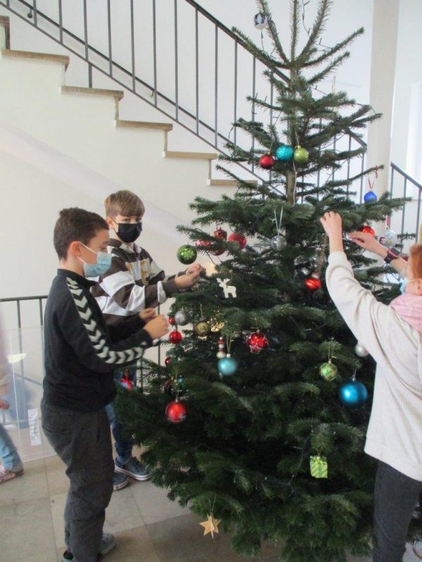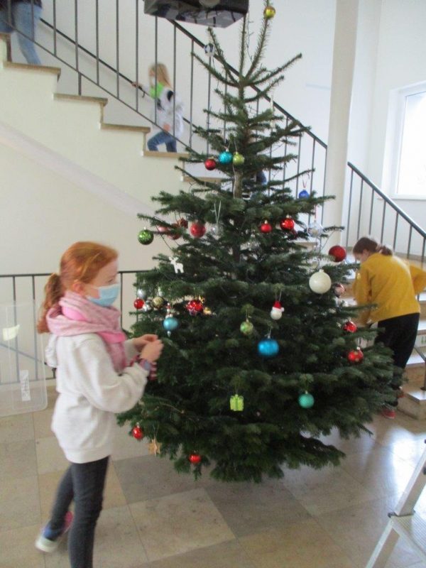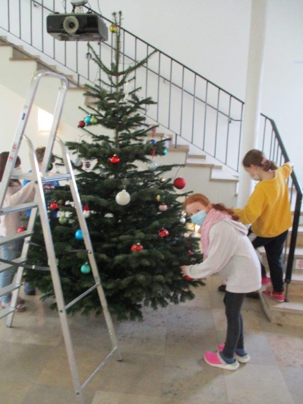 2021/2022, Campus, Grundschule, GS 2021/2022Oh Tannenbaum Traditionell wurde am Freitag vor dem 1. Advent von den Kindern des Kinderrates unser Tannenbaum geschmückt. Unterstützung erhielten sie von der Garten-AG, die sich um den Aufbau der Krippe kümmerten. In der Weihnachtsbäckerei Advent, Advent, ein Lichtlein brennt