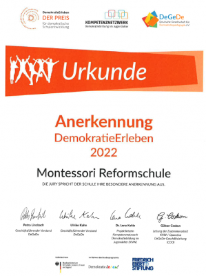 Große Freude bei uns an der Montessori Reformschule: Zum ersten Mal ist die Realschule mit dem Berufswahl-SIEGEL ausgezeichnet worden. Brita [...]