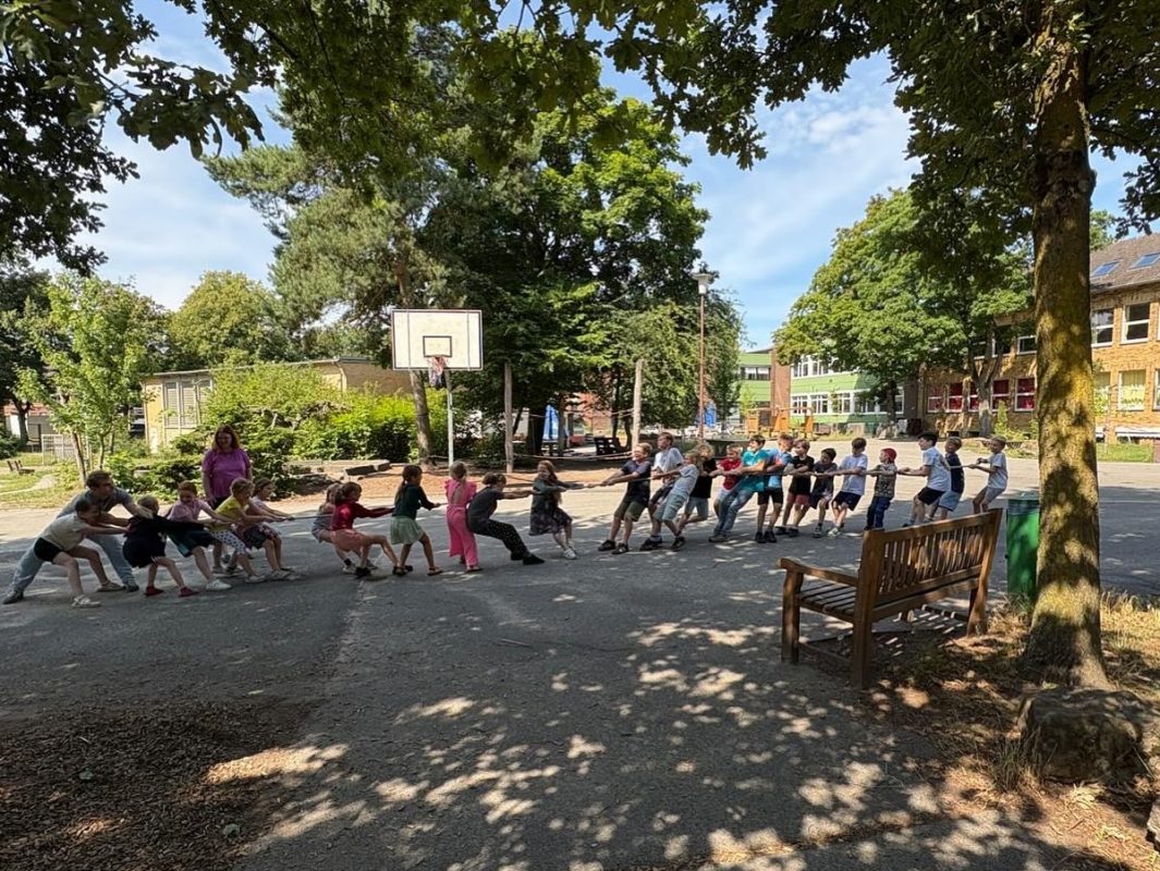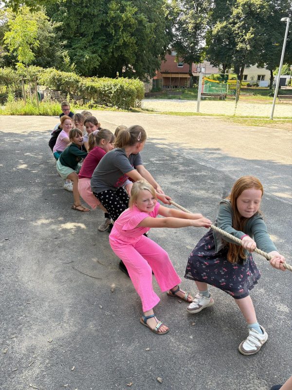 Was für eine abwechslungs- und bewegungsreiche Zeit liegt hinter uns in der OGS! An den ersten beiden Tagen unseres Sommerferienprogramms standen die Casa-Abenteuer im Mittelpunkt: Badminton, Ballspiele, Gedächtnis- und Wettläufe, Stopptanz oder Toben; die Kinder waren voller Energie und hatten viel Freude am Bewegen. Zusätzlich gab es ruhige Momente mit Yoga-Einheiten zur Achtsamkeit und Entspannung, in denen die Kinder konzentriert mitgemacht haben. Außerdem durften wir einen Badmintonverein bei uns begrüßen, der mit spannenden Übungen und Spielen die Kids begeisterte. Im Verlauf der Woche gab es weitere Höhepunkte: ein Ausflug in die Veltins-Arena mit Führung, bei dem die Kinder hinter die Kulissen schauen konnten und Schalke-Spieler trafen. Ergänzend dazu stand beim Judo-Training Aufwärmen, Fallübungen und Partnerarbeit im Fokus; Teamgeist, Respekt und Achtsamkeit standen im Vordergrund.
