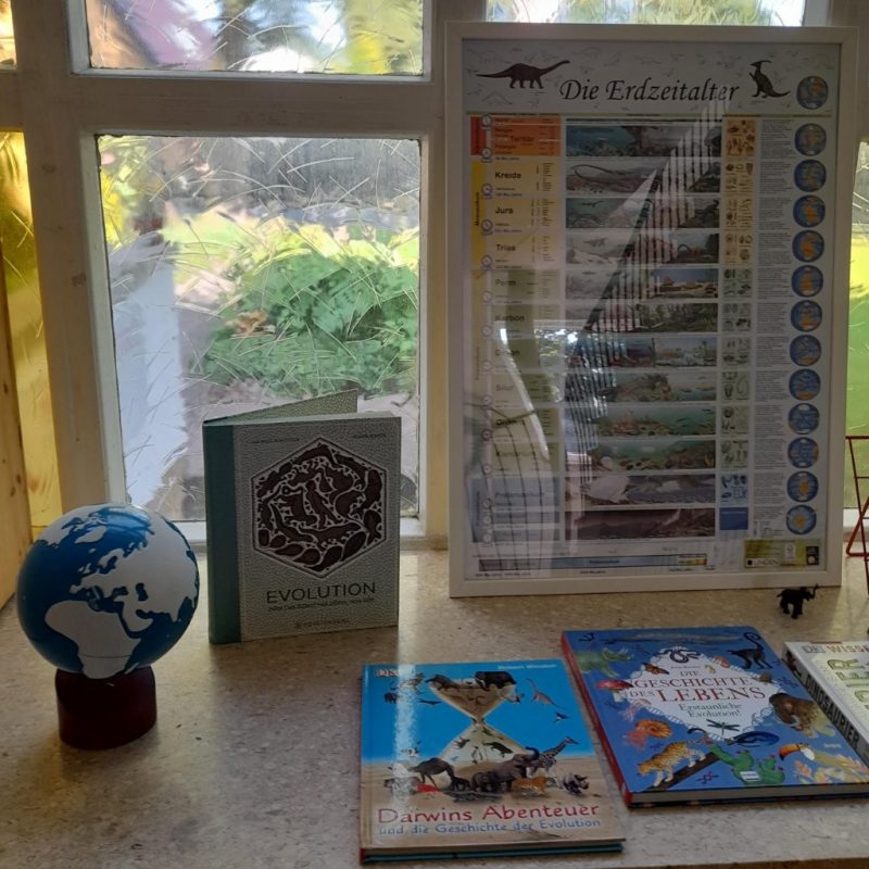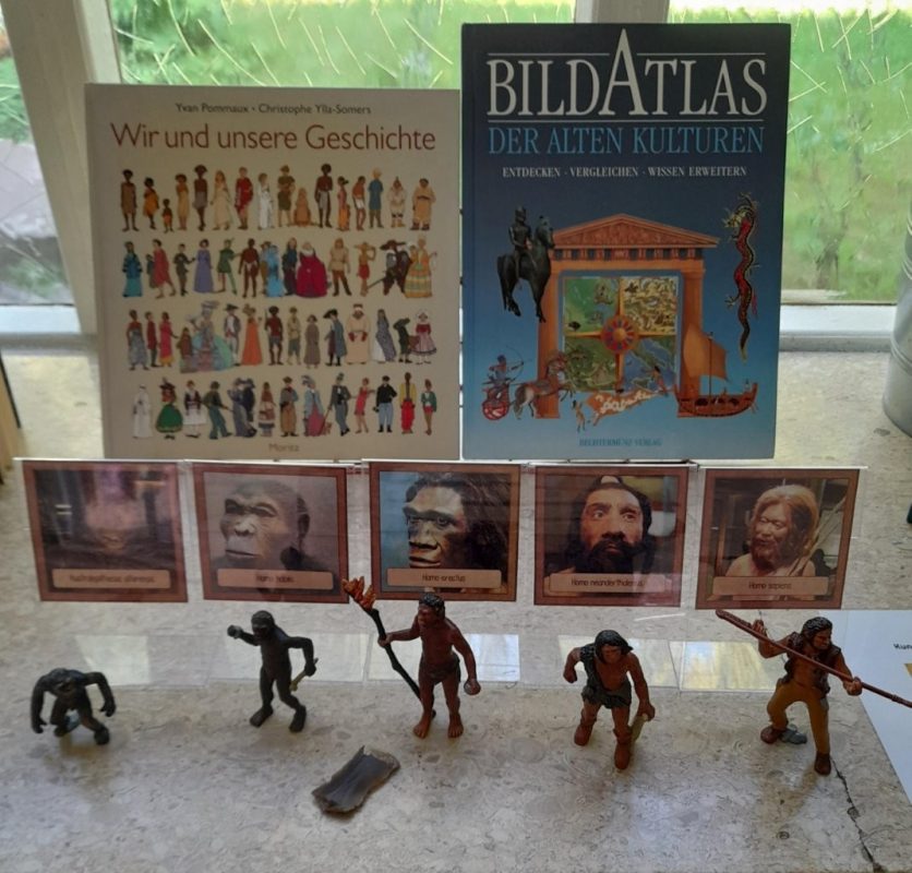 Grundschule, GS 2024/2025Wie das Leben auf die Erde kam… … und vom Kommen des Menschen. Eine Ausstellung zu den Kosmischen Erzählungen von Maria Montessori. Sehr erfolgreiche Waldjugendspiele! OGS-Bienenvolk